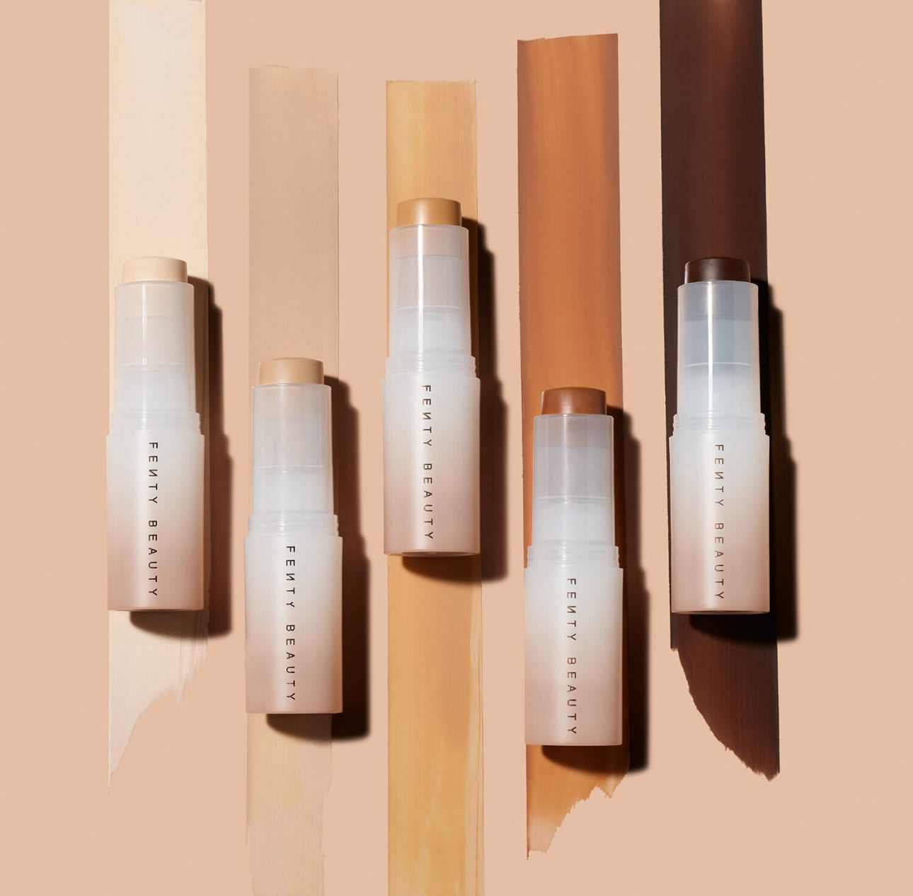 Il fondotinta in stick aze Drop Blur + Smooth Tint Stick di Fenty Beauty assicura un effetto sfumato immediato ed è facile da applicare.