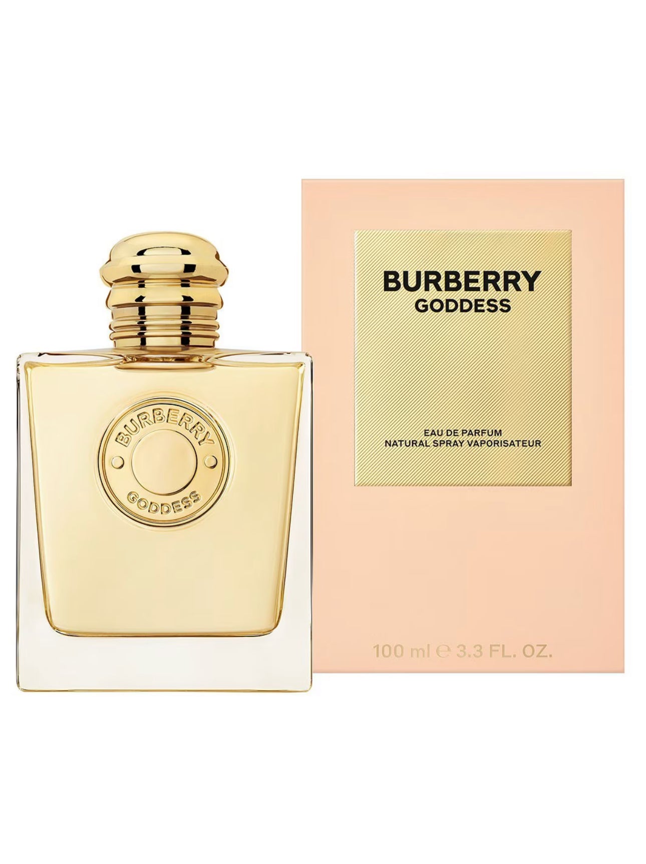 Creazione elegante, Burberry Goddess Eau de Parfum è disponibile in flacone ricaricabile. La ricarica è venduta separatamente. Un medaglione d'oro aggiunge un tocco contemporaneo al flacone, mentre l0'inserto in gabardine beige e oro della confezione evoca il ricco patrimonio del marchio.