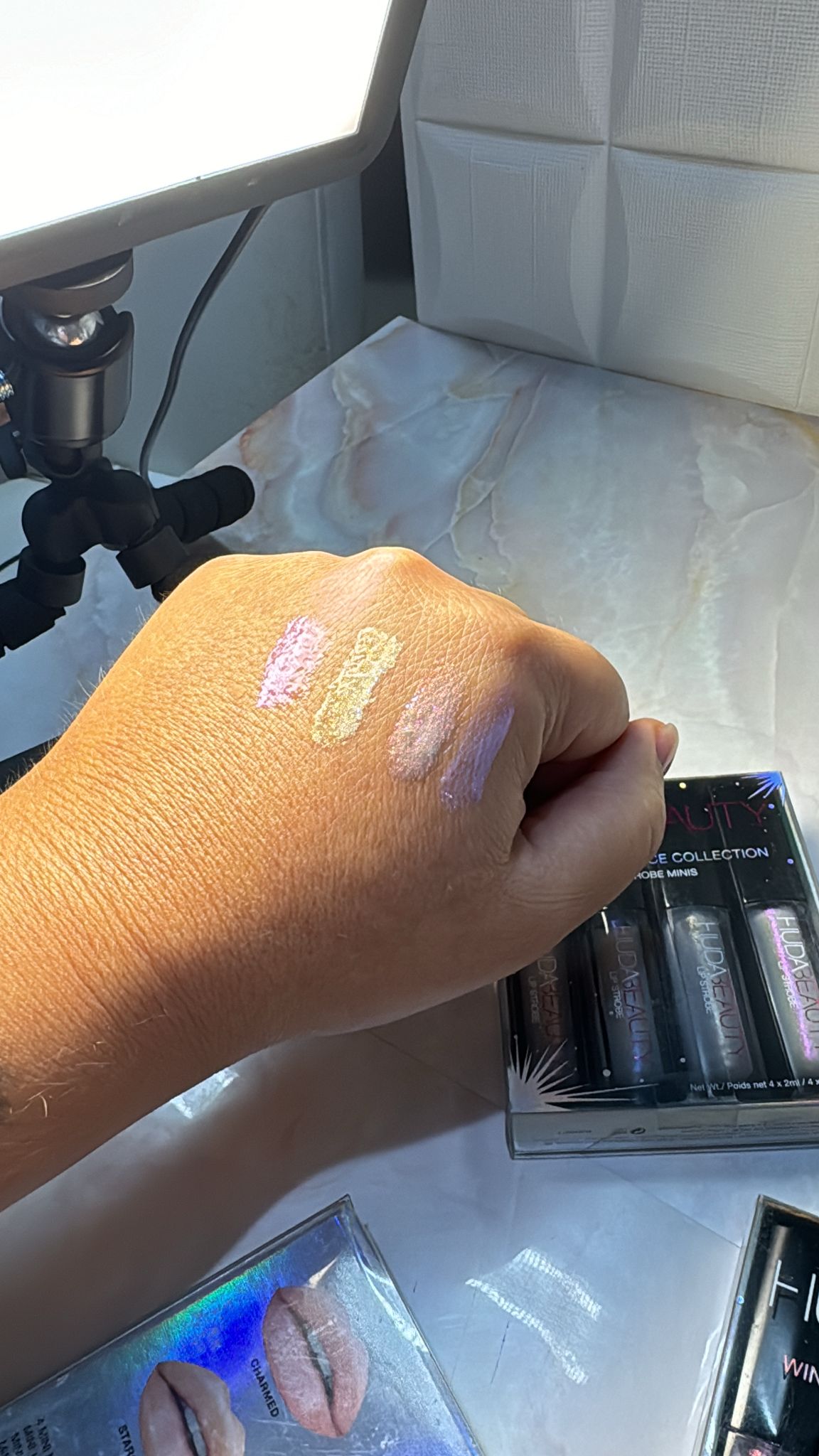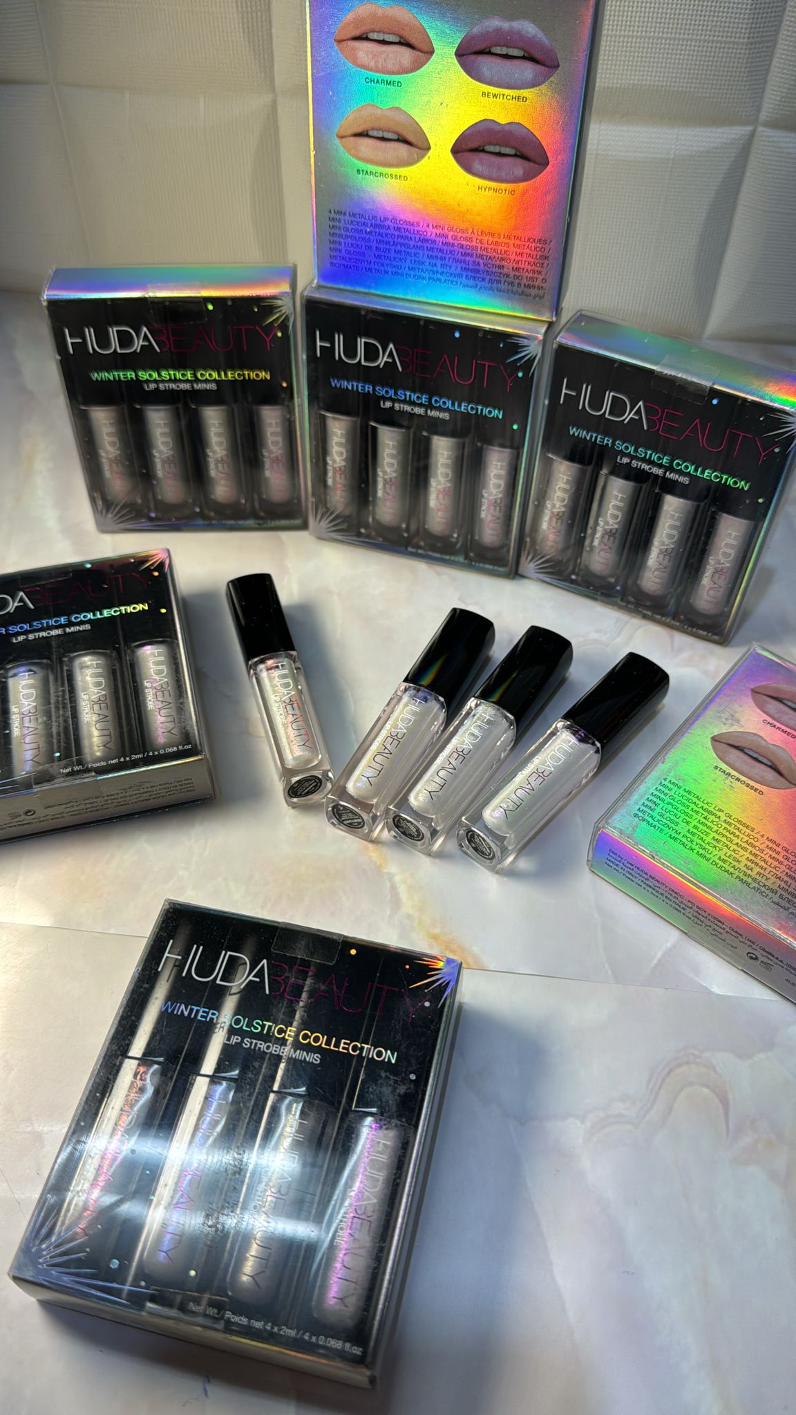 La collezione comprende tonalità che sono state appositamente selezionate per le tonalità della Huda Winter Solstice Highlighter Palette.