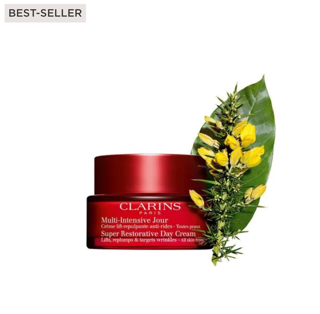 >Il trattamento anti-età giorno, che attenua le conseguenze sulla pelle dei cambiamenti ormonali legati all’età. Il viso è immediatamente levigato, giorno dopo giorno la pelle appare più tonica, uniforme e come rimodellata. Il suo segreto? Un potente duo vegetale, nato dall'INNOVAZIONE Clarins, composto dall’estratto di harungana bio e dall’estratto di ginestra bio, che contribuisce a ridensificare la pelle, donare un effetto lifting e contrastare il rilassamento cutaneo. Le rughe sono attenuate. Perfettamente idratata, la pelle è più rimpolpata. La texture fondente contribuisce a rendere l’incarnato uniforme e la pelle più luminosa. Il profumo fresco dalle delicate note floreali, con un cuore cipriato, regala una piacevole sensazione di comfort. Include il complesso antinquinamento Clarins.