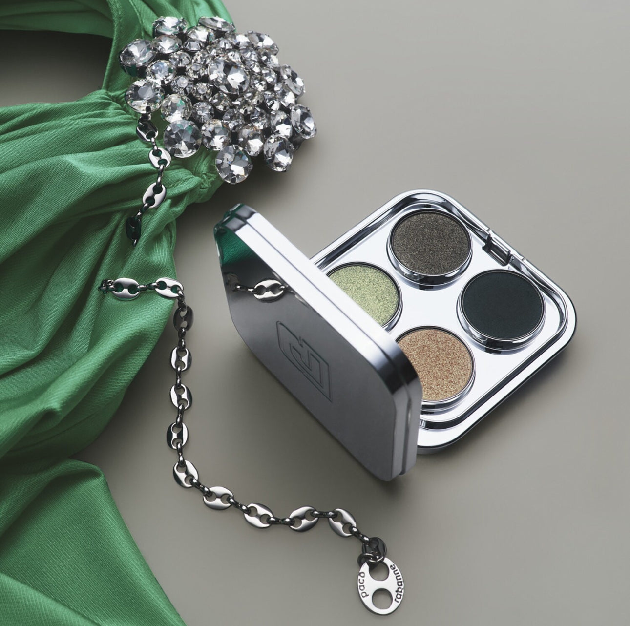 Versatili, multi-finish e multi sensoriali, le Eyephoria Handbag Palette di Rabanne contengono ombretti altamente pigmentati e si applicano in una sola passata creando una sensazione di seconda pelle. Realizzati per sbizzarrirsi con i colori, questi ombretti reinventano l'esperienza delle polveri compatte grazie a finish e sensorialità innovative, di grande impatto in un solo colpo di pennello. Rabanne transforma le creazioni fashion in quattro texture di ombretti altamente pigmentati: matte, metallico, glitterato & glossy. Queste palette di ombretti contengono: