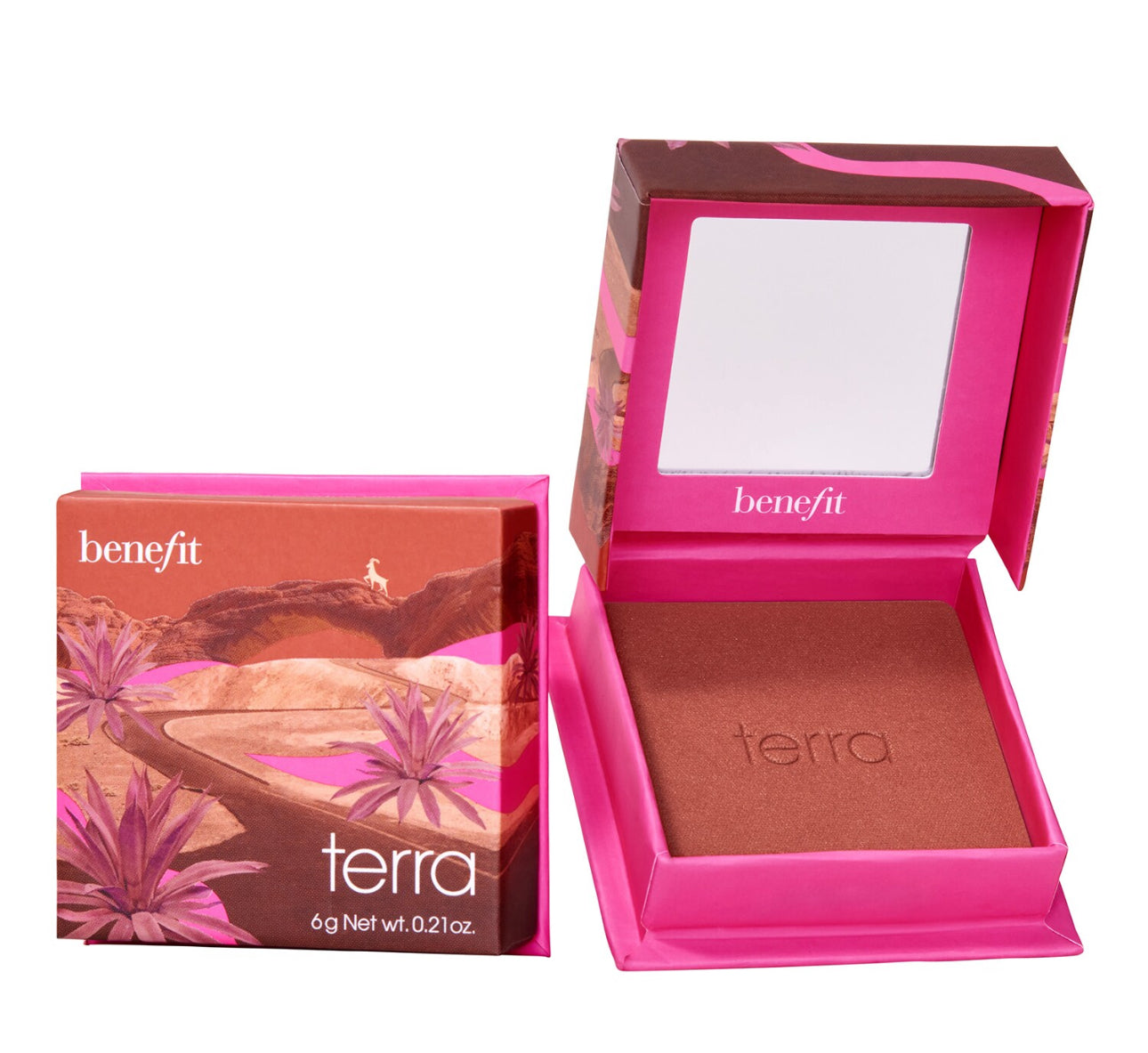 Scalda le tue guance con le sfumature calde e intense di Terra, il blush-bronzer color terracotta di Benefit Cosmetics!