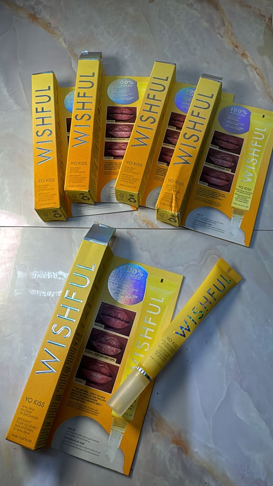 Qual è il segreto dietro l’esfoliante enzimatico per labbra WISHFUL Yo Glow di Huda Beauty? È una potente miscela di enzimi di ananas e papaya insieme a esfolianti morbidi, BHA e AHA che creano una morbida luminosità sulle tue labbra. Leggera e lattiginosa, la formula deterge delicatamente la pelle, eliminando le cellule morte, lo sporco e le impurità per lasciare spazio a labbra più morbide e una finitura più elastica che funge anche da tela liscia quando applichi il tuo gloss preferito.